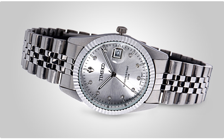 时光一百(TIME100)女表小表盘简约防水女士腕表套装女手链手表七夕礼物送女友W50888L钢色