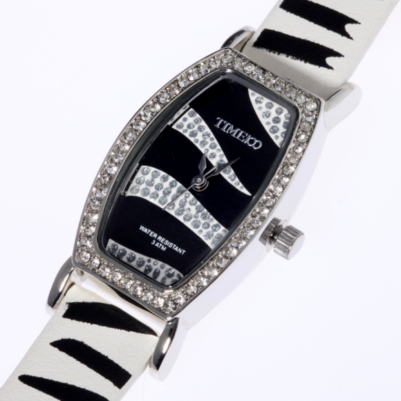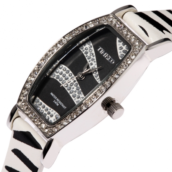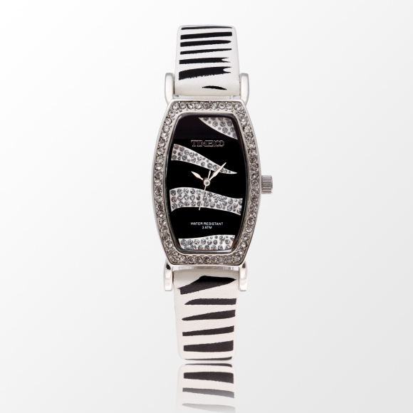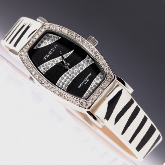 豹纹皮带镶钻闪粉面个性女表 (全国包邮)