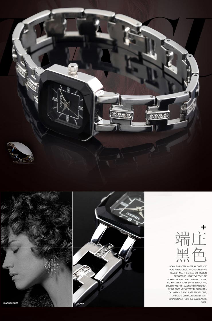 时尚椭圆形闪钻手链女表W50170L间玫瑰金