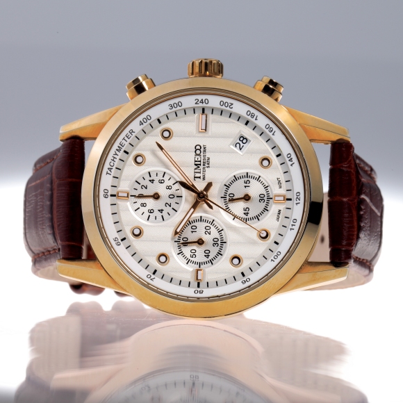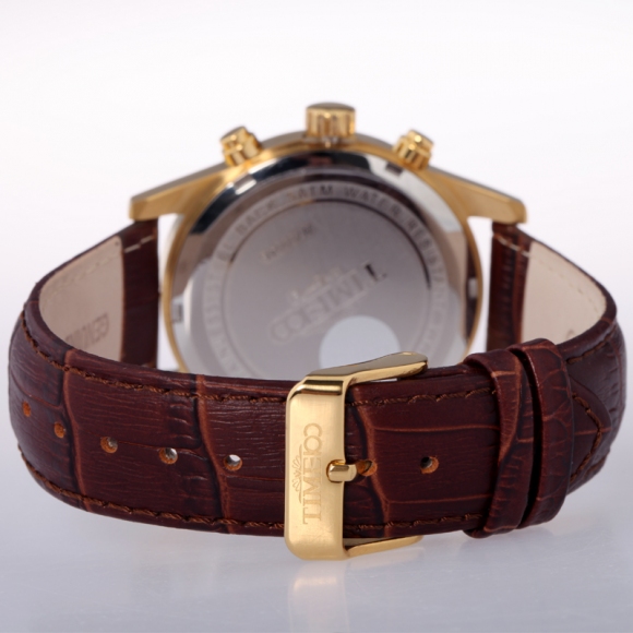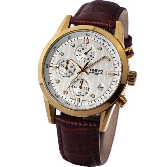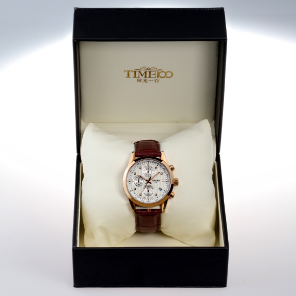 TIME100时光一百 古典罗马刻度多功能真皮石英男表W80060G