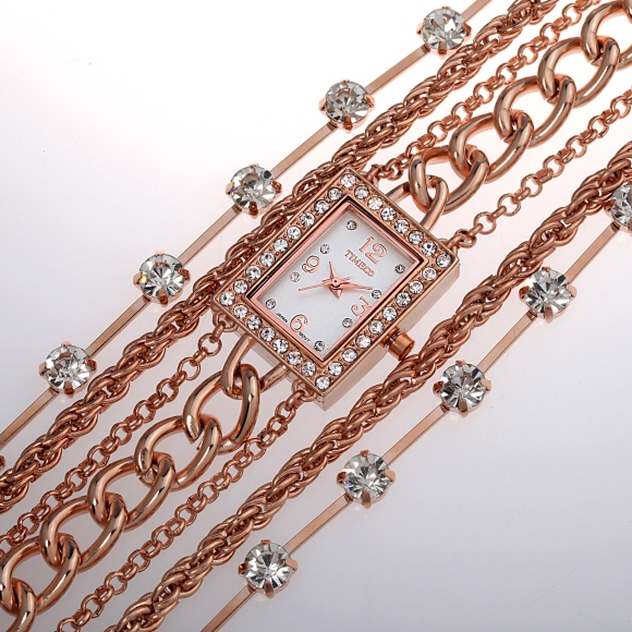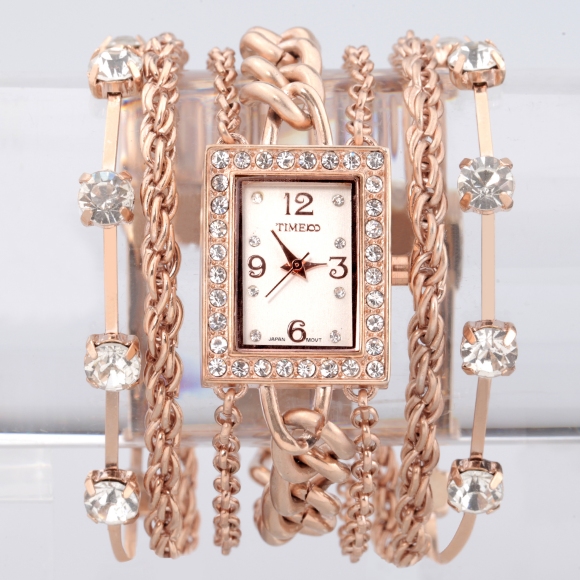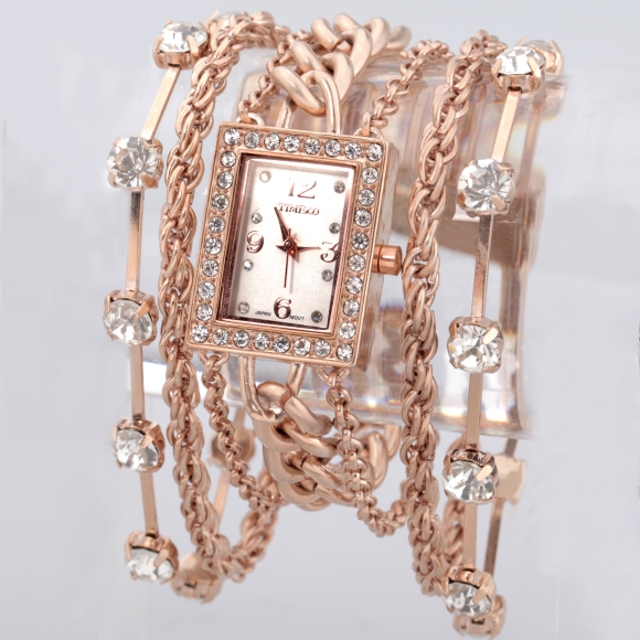 时尚椭圆形闪钻手链女表W50170L间玫瑰金