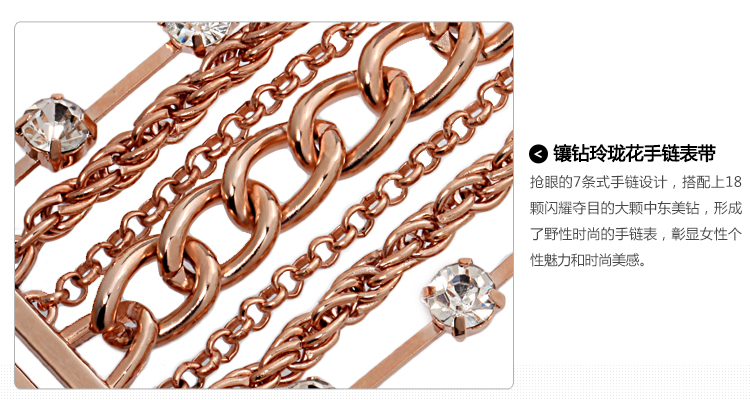 时尚椭圆形闪钻手链女表W50170L间玫瑰金