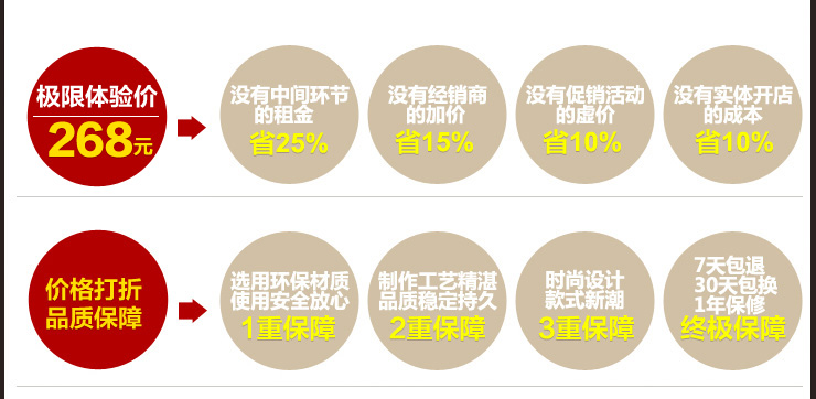 3、退换货前提条件:不影响二次销售的前提下,7天内任何质量问题(个人喜好、人为损坏,私自折除零配件不予以退换货)都可以给予退换货处理。