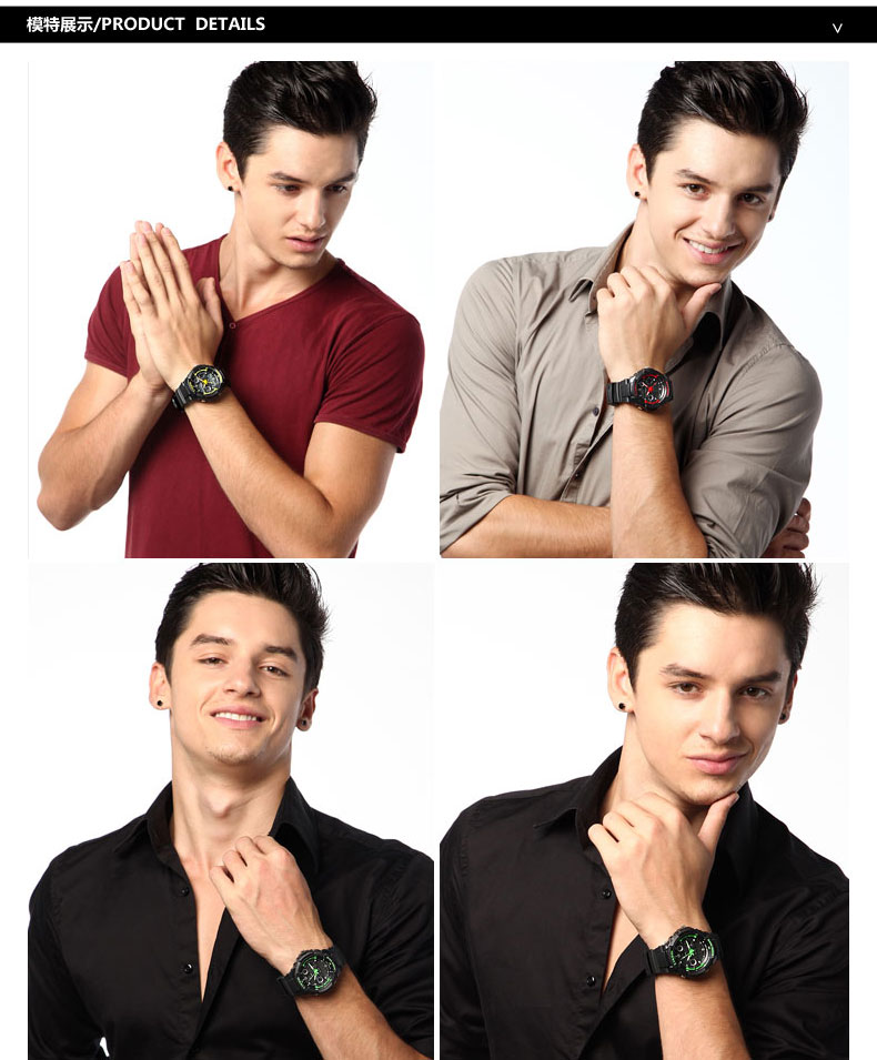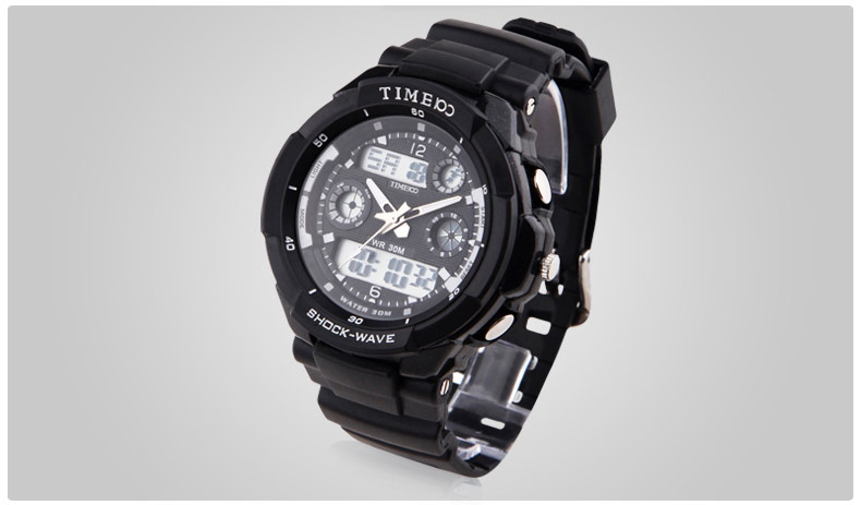 手表男运动风多功能学生酒桶型男表潮流时尚防水夜光腕表W70181G黑色