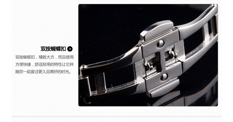 • 表扣材质:双锁一按三折表扣(蝴蝶扣)