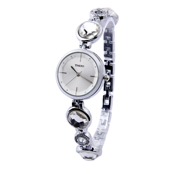 时光一百(TIME100)女表小表盘简约防水女士腕表套装女手链手表七夕礼物送女友W50888L钢色