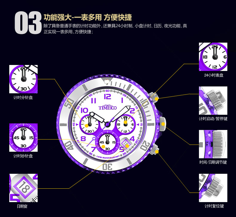 时尚多功能环保硅胶运动手表 全国包邮