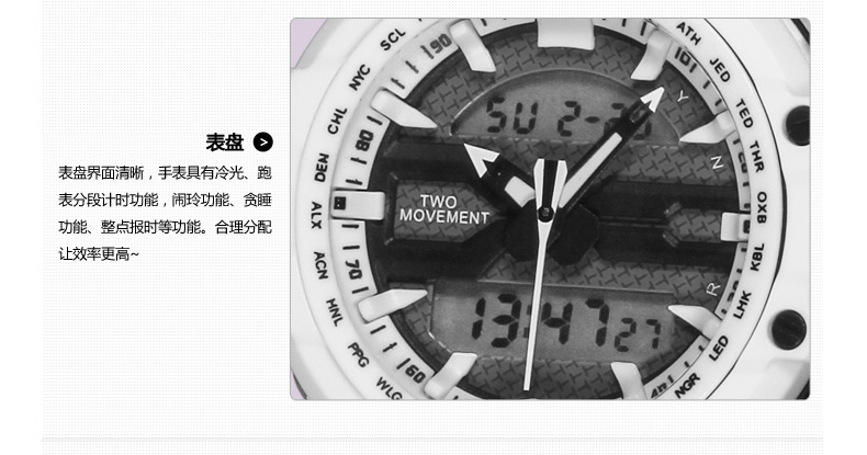 双显多功能户外运动电子表W40110G (全国包邮)