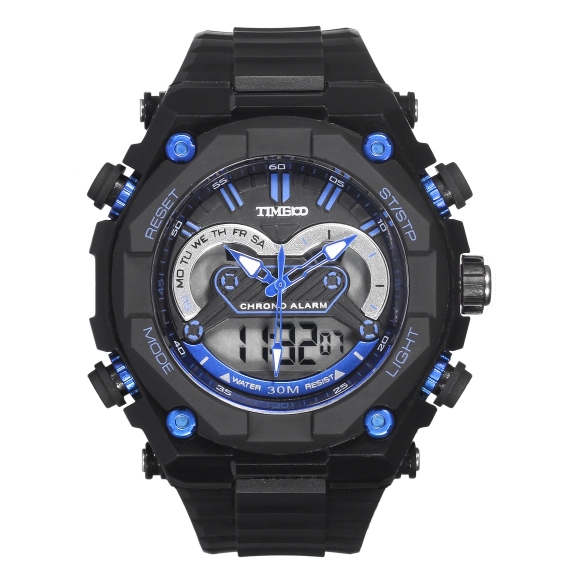 手表男运动风多功能学生酒桶型男表潮流时尚防水夜光腕表W70181G黑色