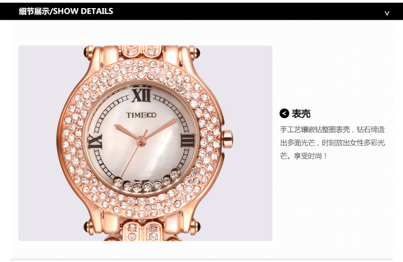时尚椭圆形闪钻手链女表W50170L间玫瑰金