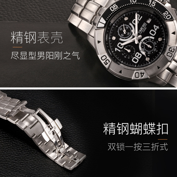 100米防水 时尚多功能精钢石英男表 (全国包邮)