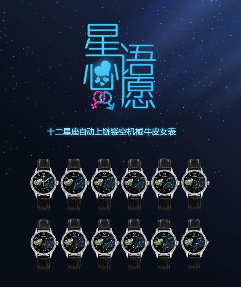 新款十二星座女士机械手表 (全国包邮)
