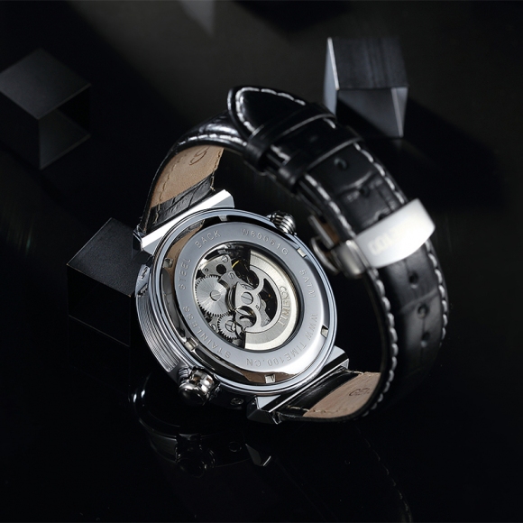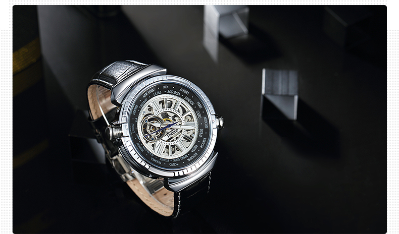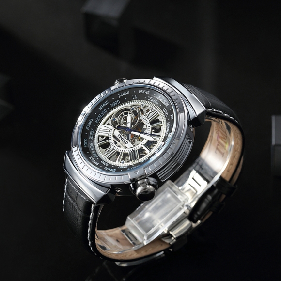 世界时区飞轮镂空机械表牛皮男表 (全国包邮)