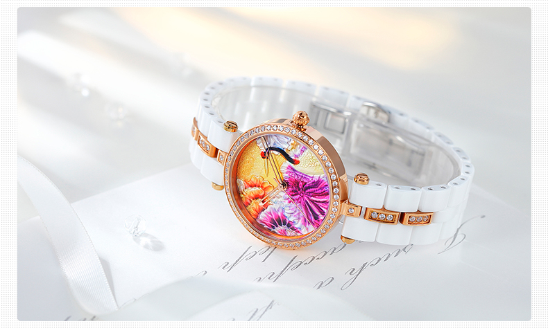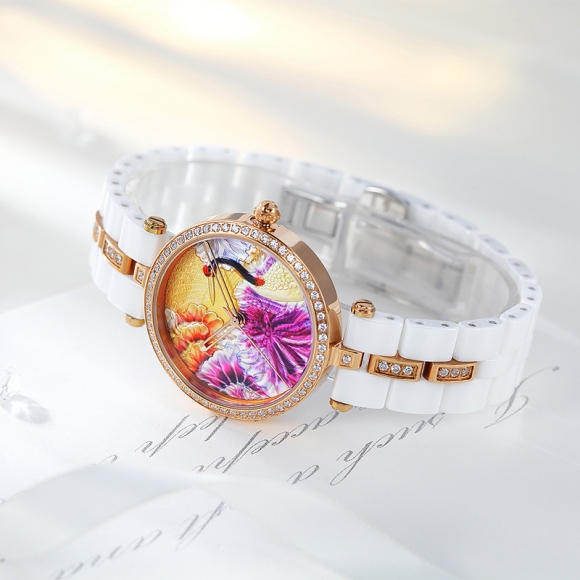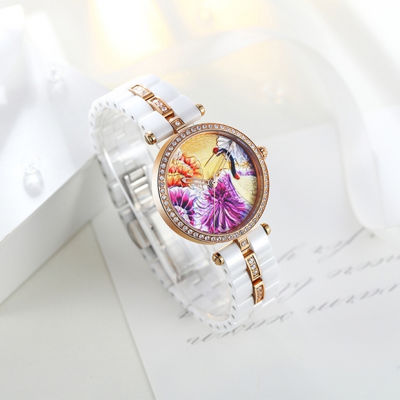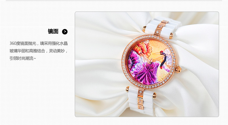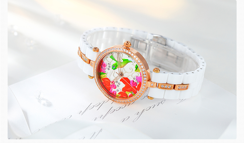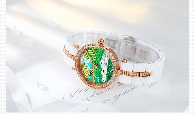 时尚灵动立体雕花珐琅陶瓷女士腕表 (全国包邮)