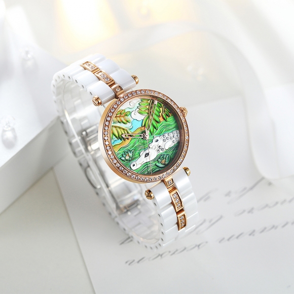 时尚灵动立体雕花珐琅陶瓷女士腕表 (全国包邮)