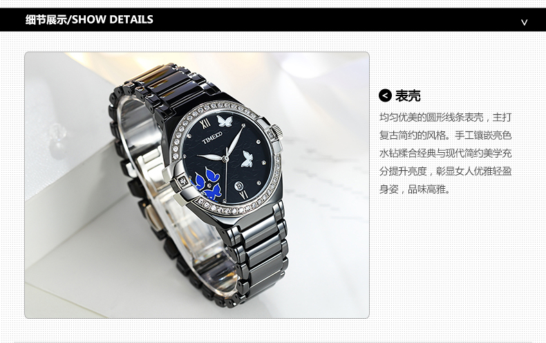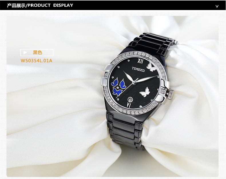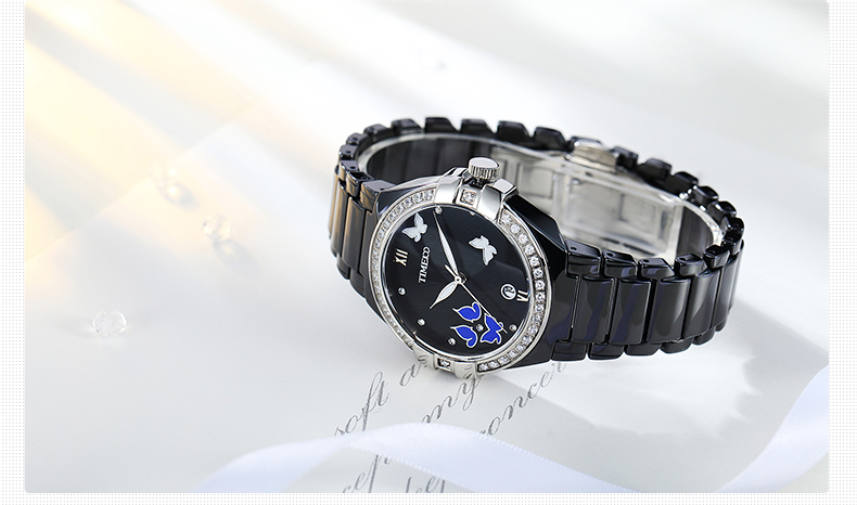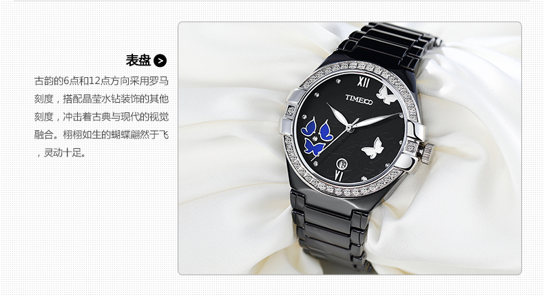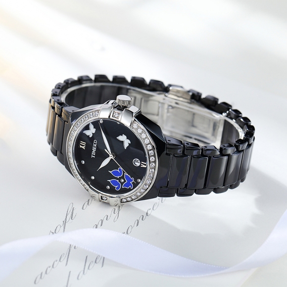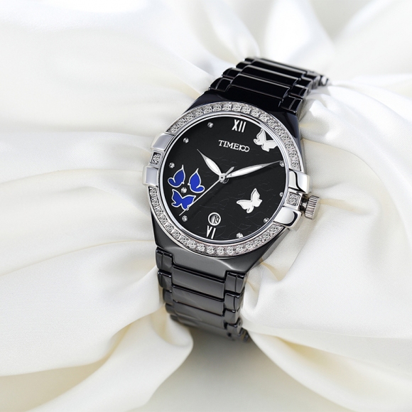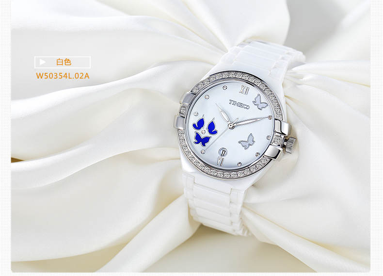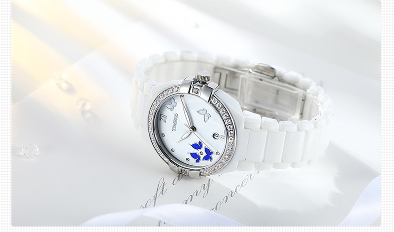 复古甜美蝴蝶水钻陶瓷女士腕表