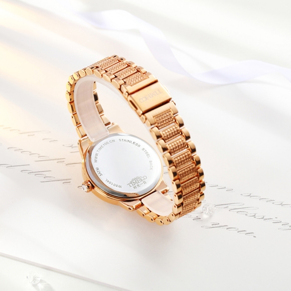 时光一百(TIME100)女表小表盘简约防水女士腕表套装女手链手表七夕礼物送女友W50888L钢色