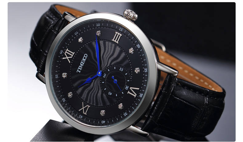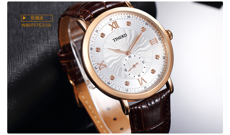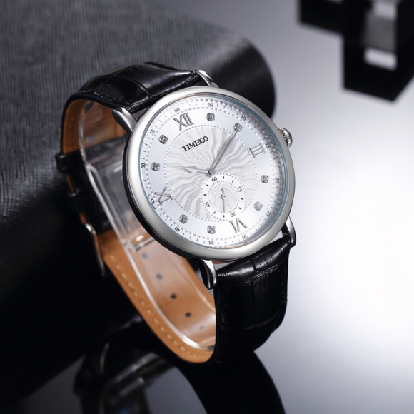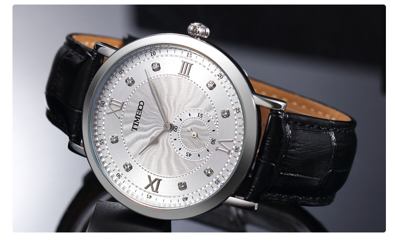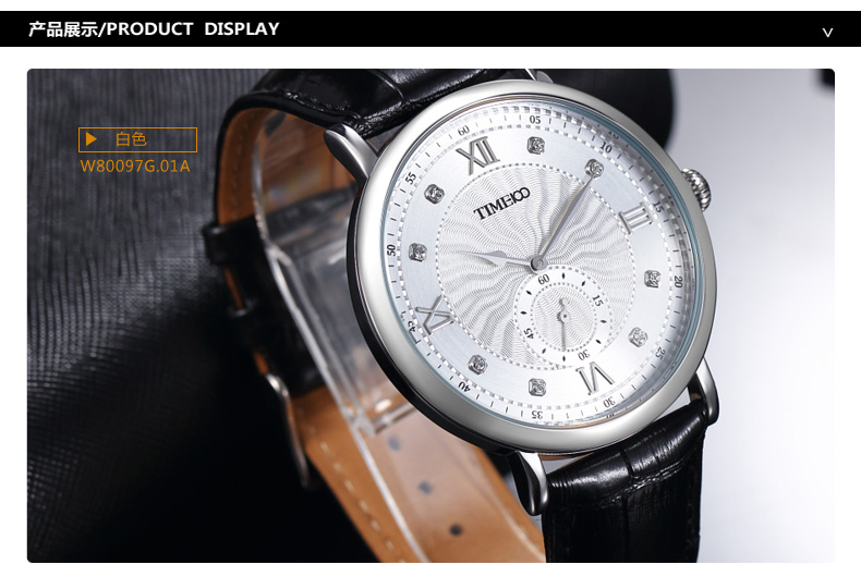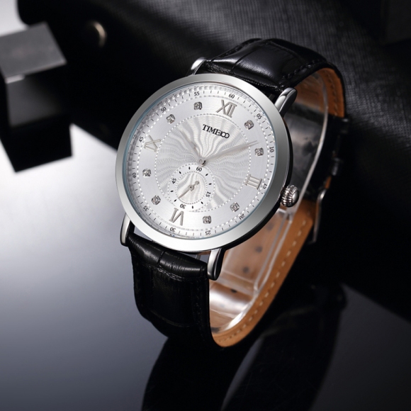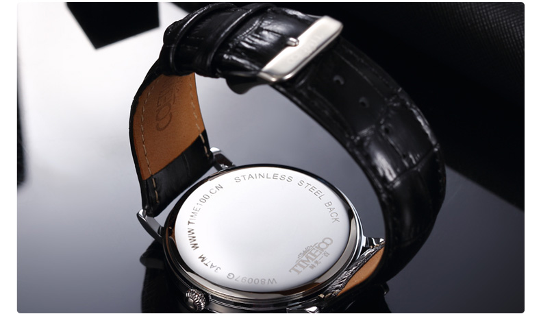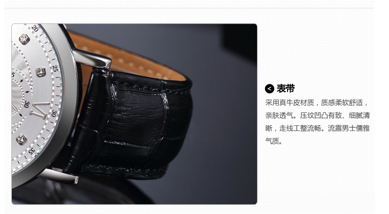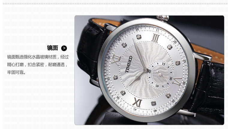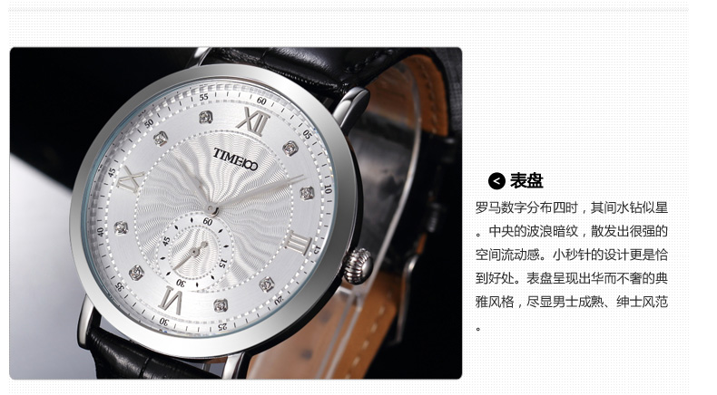 时光一百 时尚简约闪钻真皮石英男表