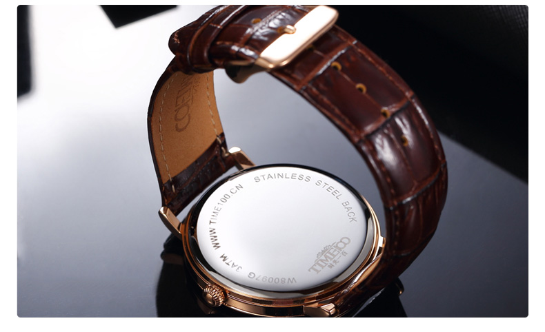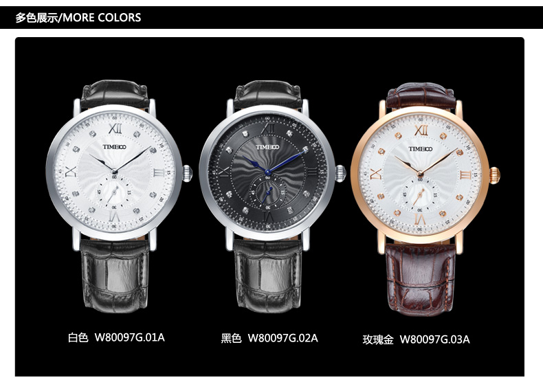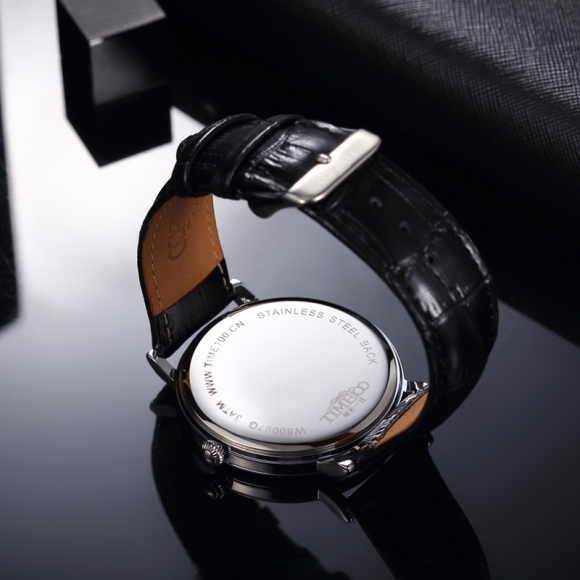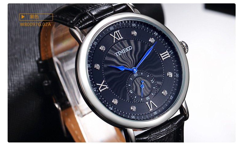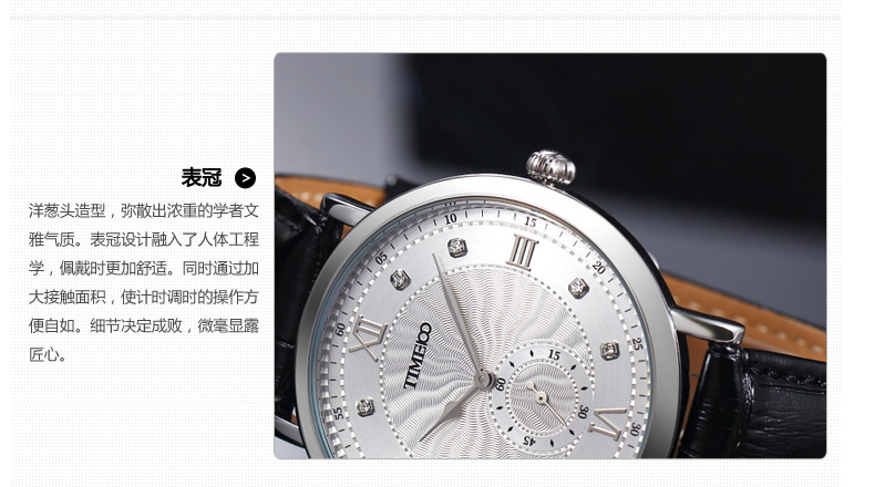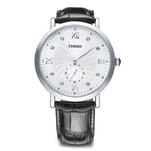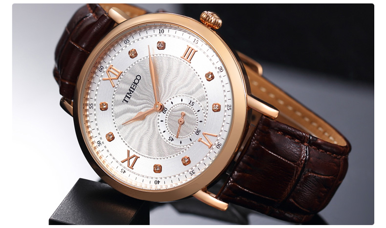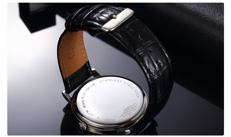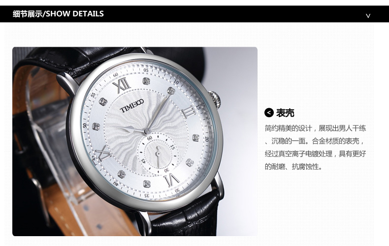 时光一百 时尚简约闪钻真皮石英男表