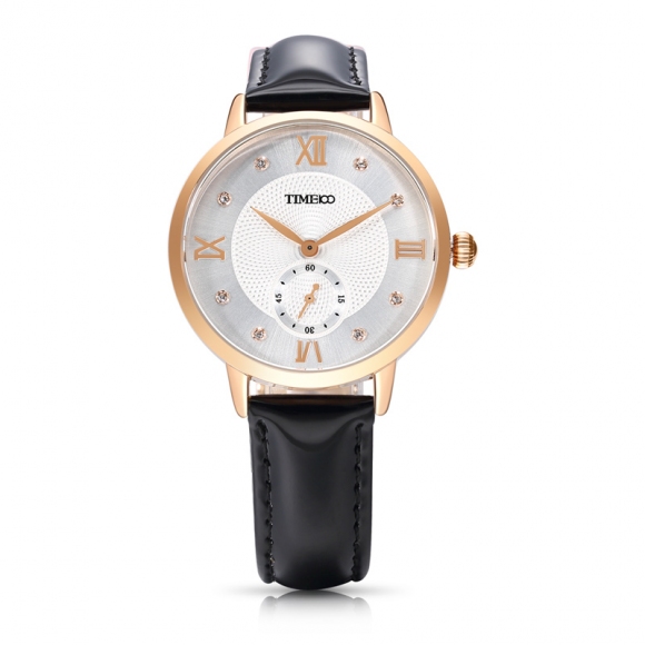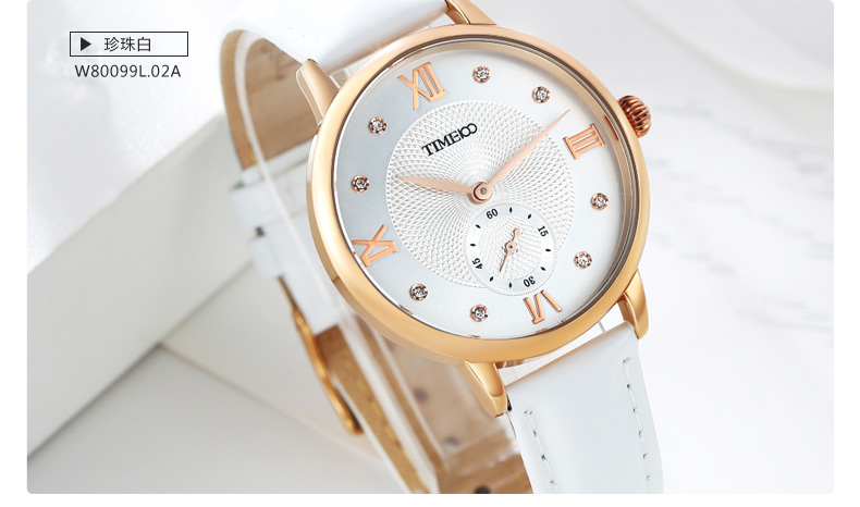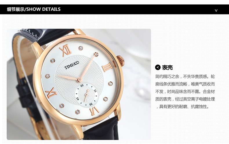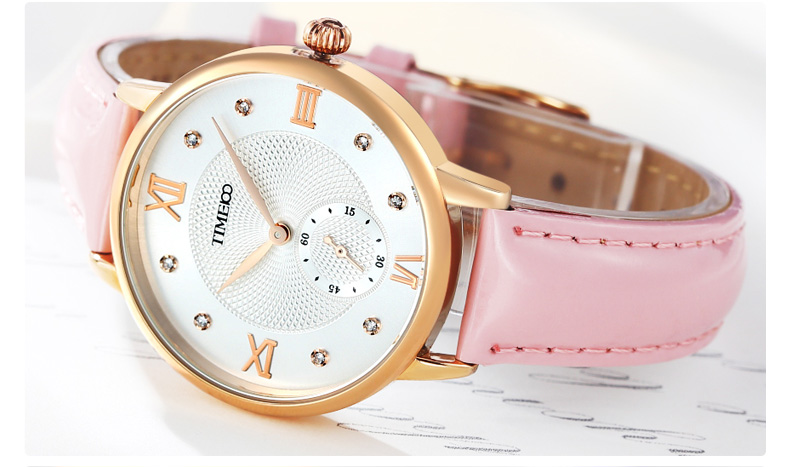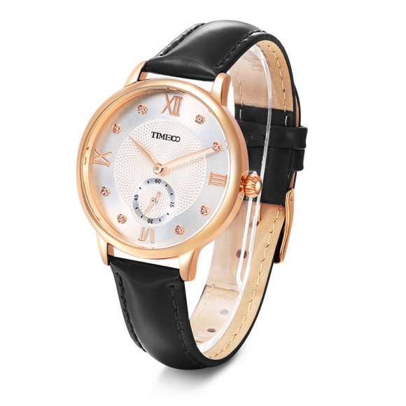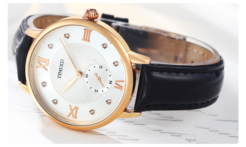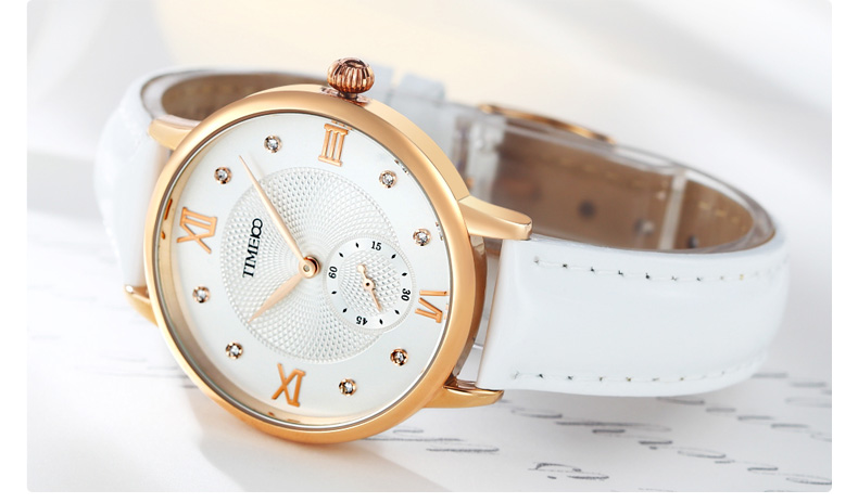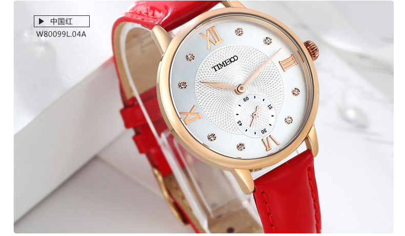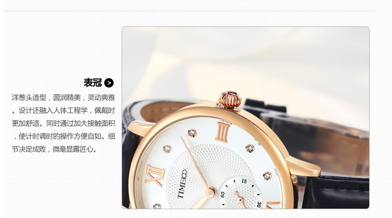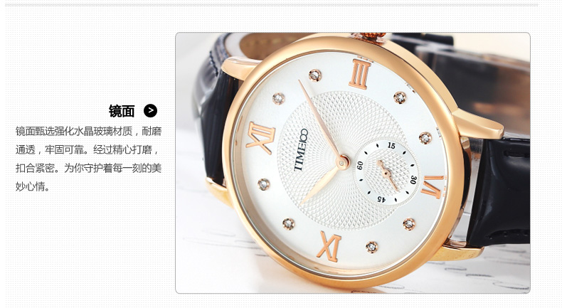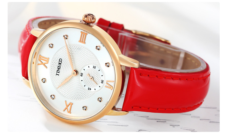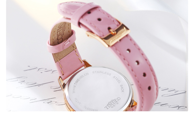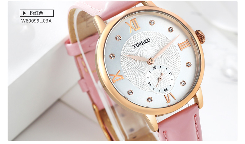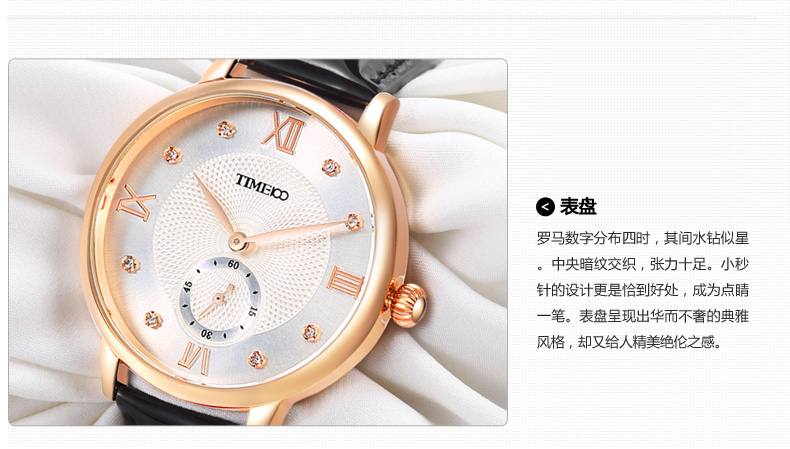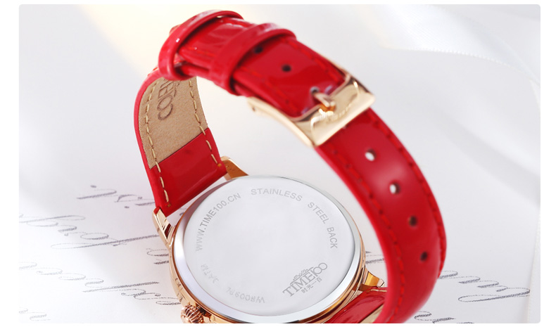 时光一百 时尚复古闪钻亮光真皮石英女表