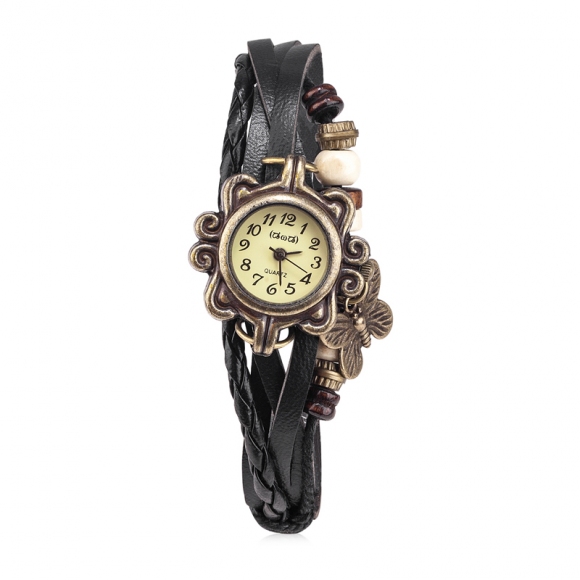 时光一百Smileyes系列 复古编织皮手链石英女表
