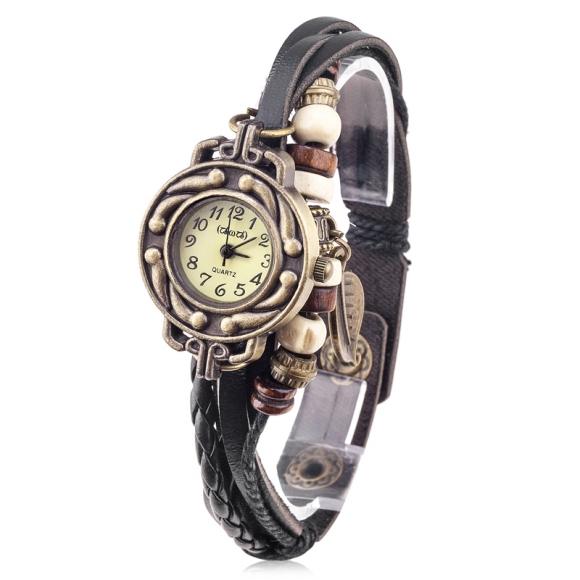 时光一百Smileyes系列 复古编织皮手链石英女表