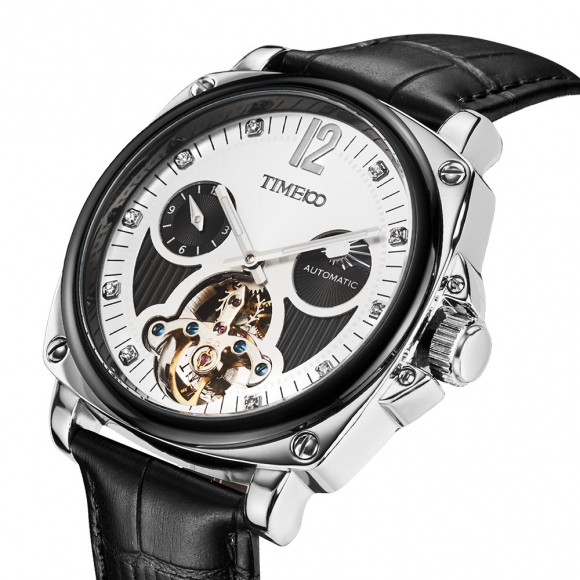 时光一百(TIME100)飞行师系列机械表天使翼商务飞轮手表多功能自动机械机芯防水男士手表W60158G