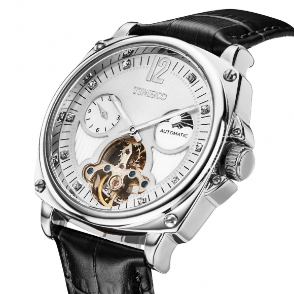 时光一百 休闲商务月相镂空机械表皮带男表