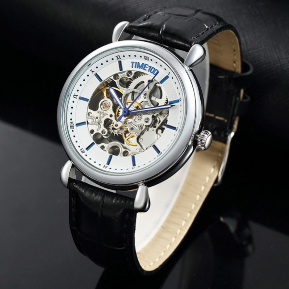 时光一百 双面镂空皮带自动机械男表