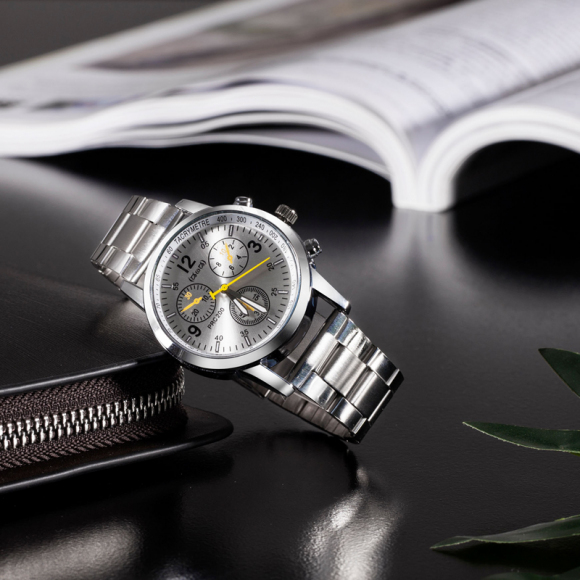 时光一百Smileyes系列 商务运动数字时标钢带石英男表