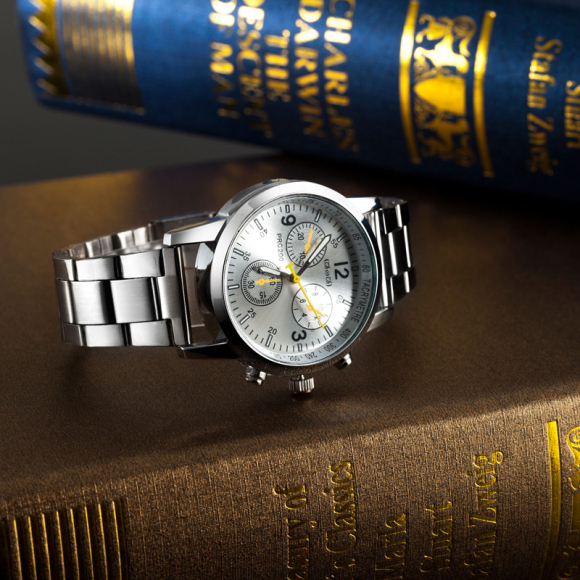 TIME100时光一百 简约复古罗马刻度日历钢带情侣男表W80069G