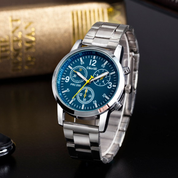 时光一百Smileyes系列 商务运动数字时标钢带石英男表