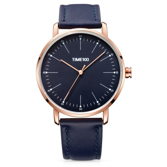 时光一百 简约刻度薄款皮带石英男表W80223G