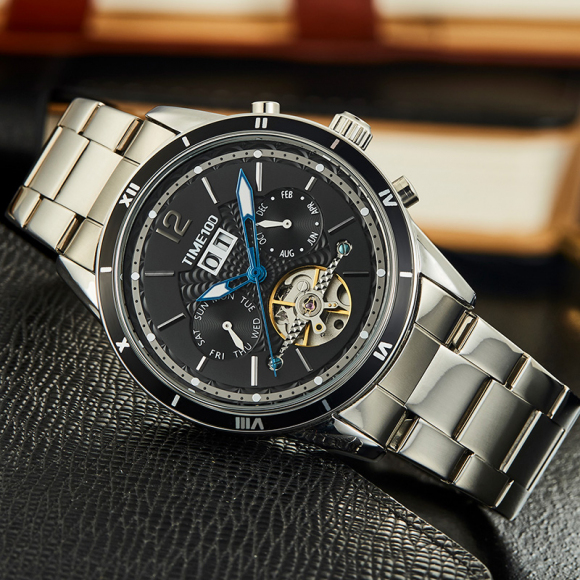 时光一百男表防水自动机械表钢带男士手表潮流休闲腕表