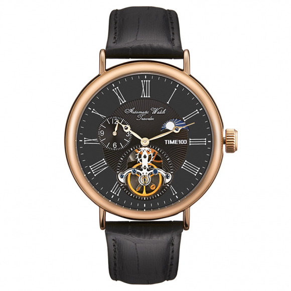 当前位置:首页 > 时尚复古罗马刻度简约风飞轮机芯多功能月相两地时男表牛皮圆盘防水机械表W60164G