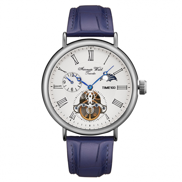 当前位置:首页 > 时尚复古罗马刻度简约风飞轮机芯多功能月相两地时男表牛皮圆盘防水机械表W60164G
