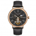 时尚复古罗马刻度简约风飞轮机芯多功能月相两地时男表牛皮圆盘防水机械表